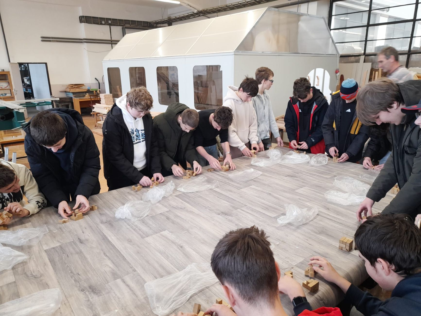 Během exkurze nahlédli do prostor určených pro dřevovýrobu, vyzkoušeli si práci ve specializovaných počítačových programech a byli svědky samotné výroby na CNC strojích, což mnohé z nich velmi zaujalo.