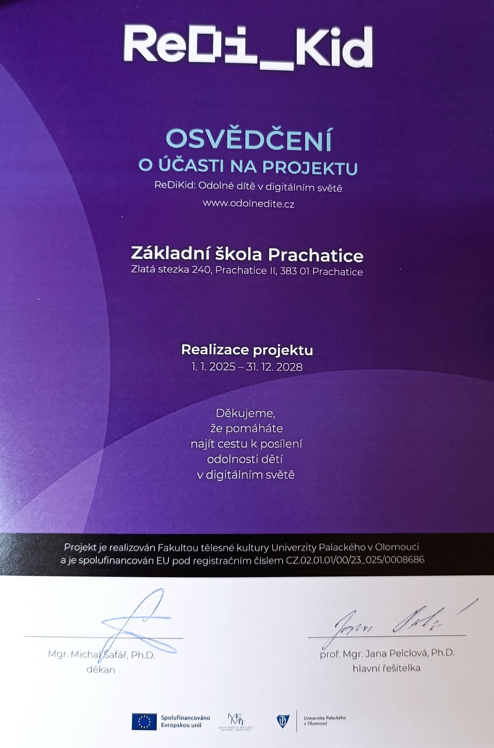 Veškeré sesbírané poznatky o vztahu digitálních technologií, odolnosti dětí a jejich každodenních činností budou následně převedeny do praxe. Poslouží k posílení digitální gramotnosti žáků i k prevenci rizikového chování v online prostředí.